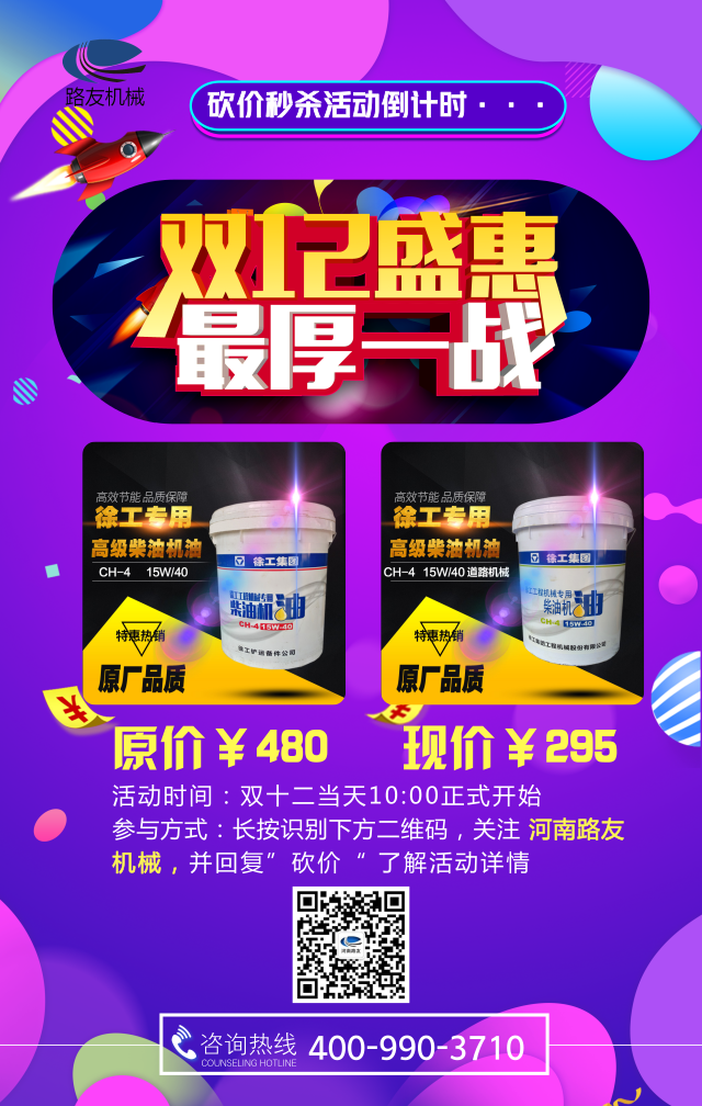 双十一不过瘾,双十二狂欢继续。MK网厂家携手河南代理河南路友机械特推出MK网装载机及道路机械油品及配件年终大促:
