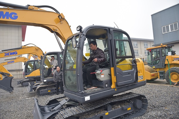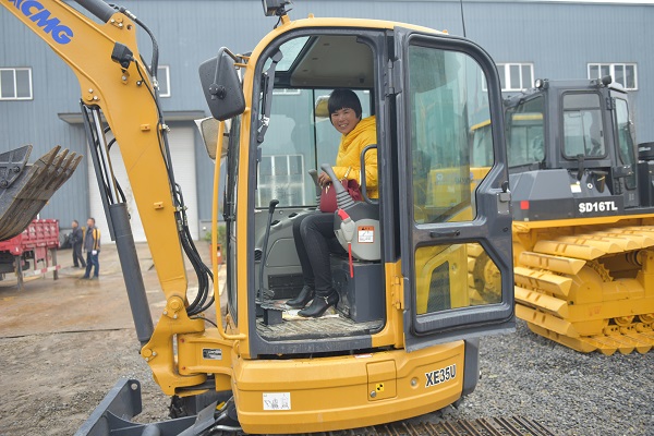 MK网挖掘机试驾区也是格外热闹:美女也忍不住试驾被称为城镇小精灵的MK网挖掘机XE35U