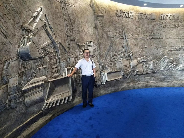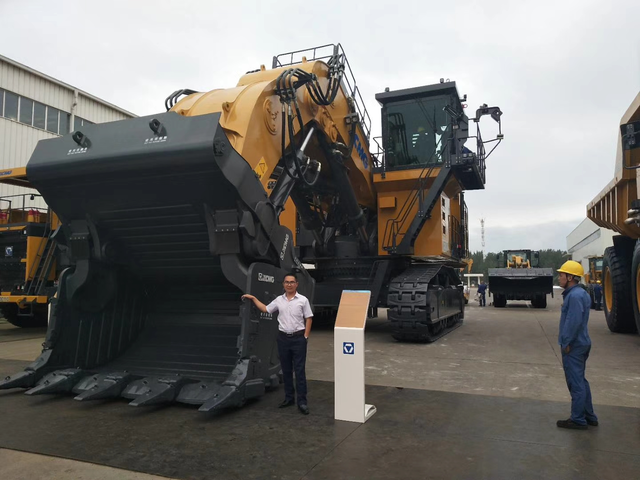 和大型挖机合影