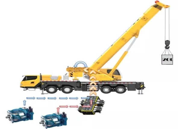 双变量泵+阀后补偿负载敏感系统,双泵自动分合流控制,可实现任意工况复合,采用阀后补偿技术,降低液压系统节流损失,并提高吊装作业微动性及操作平顺性,实现经济高效与精准操控的完美结合。