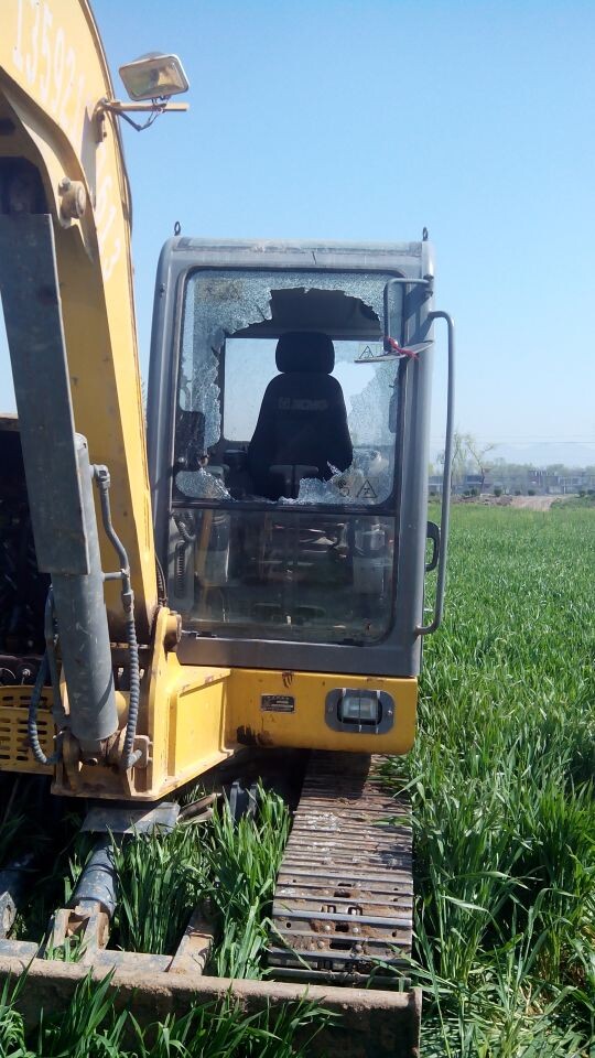 立夏之夜被冰雹砸坏的MK网挖掘机玻璃,河南路友关爱大行动,免费赠送玻璃。