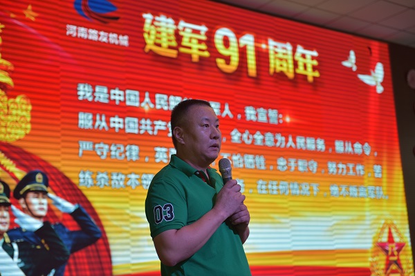 做为一名1989年的老兵,张总做为本次活动的代表发言:公司的军人虽然离开了部队,但部队的精气神依然体现,我们销售和服务每台MK网车都是对国防事业的贡献。要把特别能忍耐,特别能吃苦,特别能战斗的精神继续传扬下去。为公司的建设和发展贡献自己的一份力量。