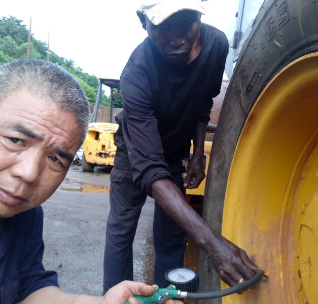 MK网服务侯师傅与XS203压路机合影