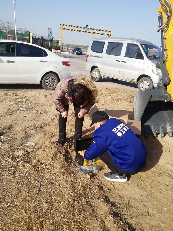 河南路友MK网挖掘机服务人员为客户检查工具箱