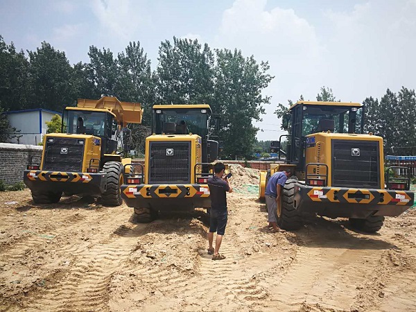 最后,检查完毕顺利将装载机交接。两名MK网服务人员在车前合影留念!