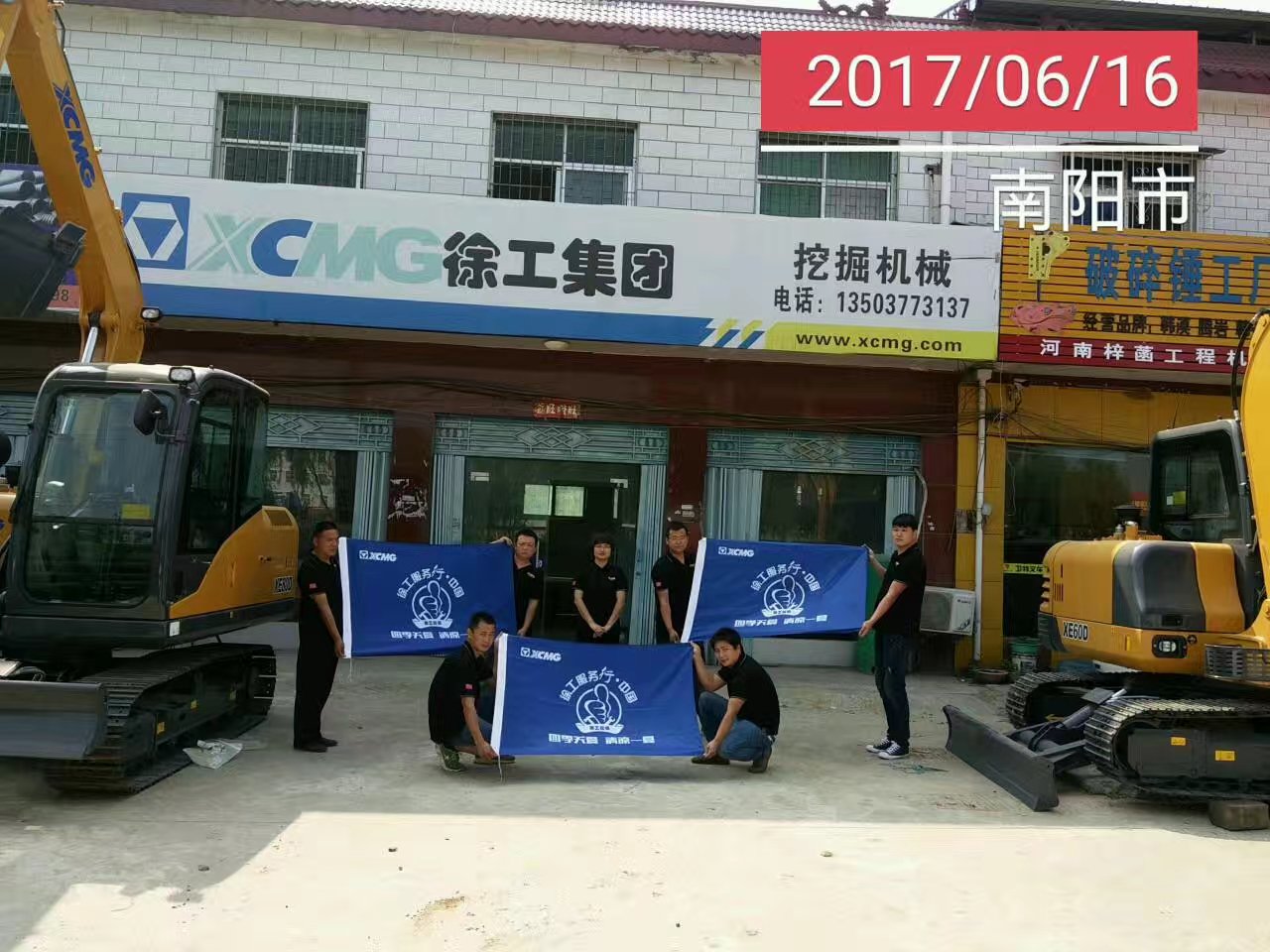 6月15日,河南路友MK网挖机服务组在南阳市开展清凉一夏工作。图为挖机服务与MK网XE75CA挖机客户合影留念。