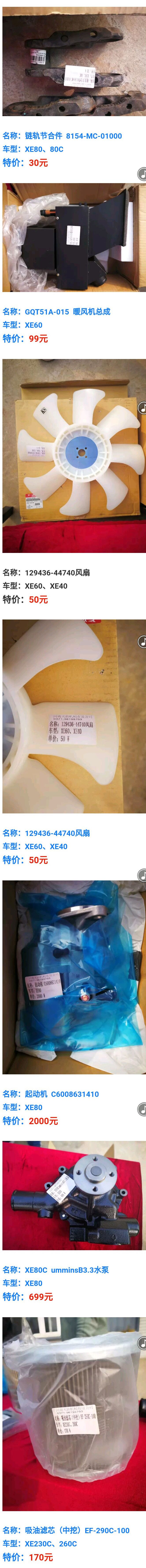 MK网挖掘机配件特价明细如下: