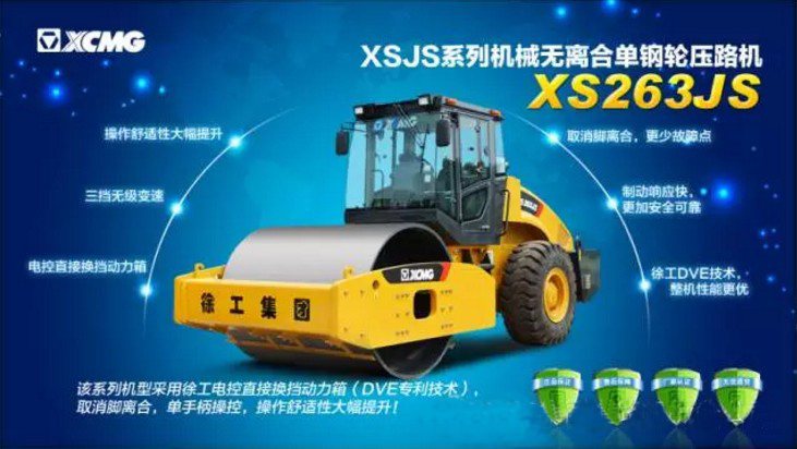新一代的MK网XS263JS单钢轮振动压路机配置MK网自主研发的电控直接换挡动力箱,采用电控直接换挡技术可实现无主离合传动,打破了机械驱动压路机的传统传动方式。简单舒适的操作,大气新颖的外观,简洁流畅的线条,高端可靠的配置,势必使XS263JS单钢轮振动压路机成为新一代的宠儿。