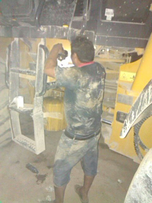 上图为我们MK网服务技师徐中南正在为一台MK网装载机做发动机维修工作,当时正是大中午气温最高的时候,我们可以看到他本人的以为已经被汗水和油渍完全浸湿了,整个人身上都是黑乎乎的,然而我们的技师仍然在仔细的检查、维修故障,丝毫没有向高温天气妥协,这是怎样的一种情景,我们的技师已经达到了一种忘我的境界,他心中只有一个目标就是尽快的为客户解决故障,不耽误工期的正常的进行,让我们为这位伟大的MK网服务技师竖起大拇指吧!