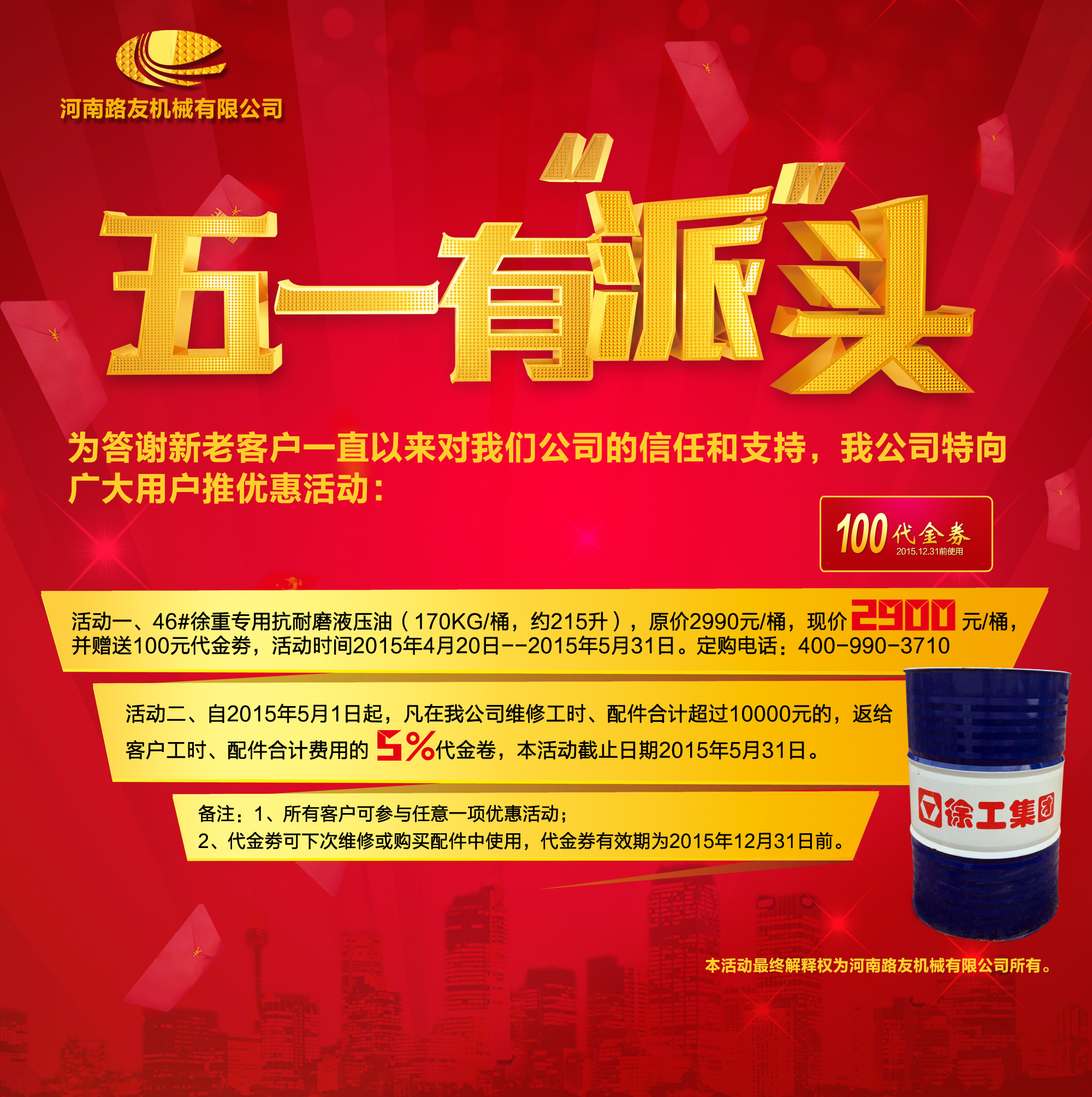 喜迎五一,河南路友机械有限公司为答谢新老客户一直以来对我们的信任和支持。