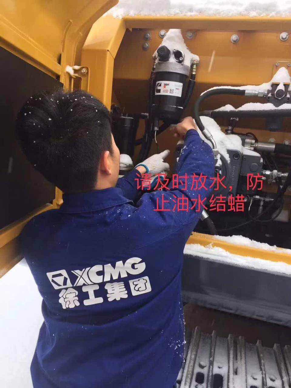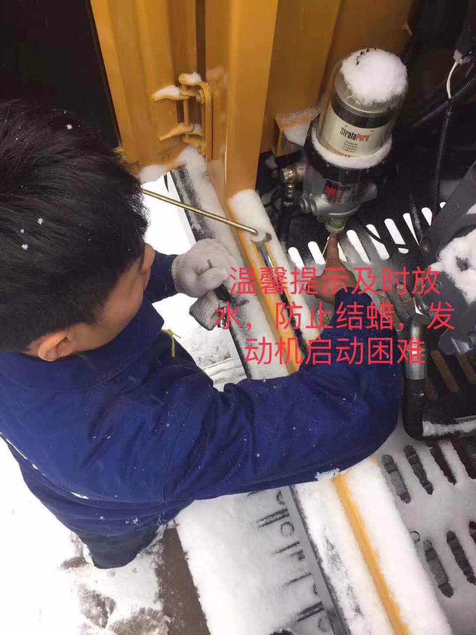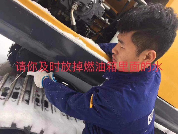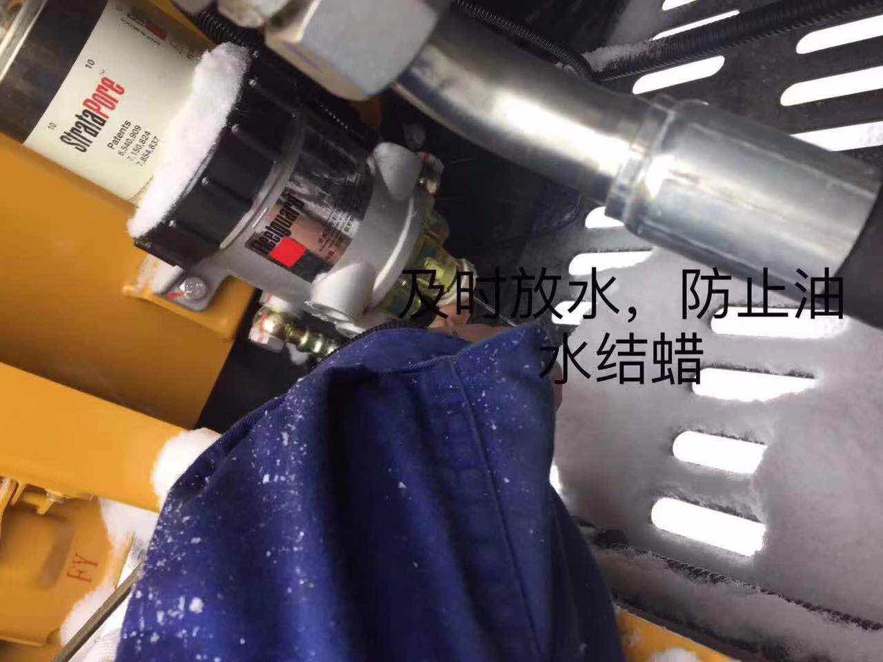 2、同时请记得下班后,放掉柴油箱和油水分离器中的积水,防止积水结冰后堵塞油路而引起挖掘机无法启动。