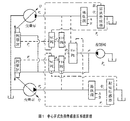 负荷传感系统(或称负载敏感系统),由中心闭式阀和压力补偿器组成,其控制原理与以上几种系统截然不同,功能更优越。