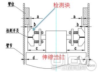 1、增大检测感应装置空间:优化伸缩油缸结构,使尺寸c增大4mm;