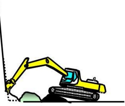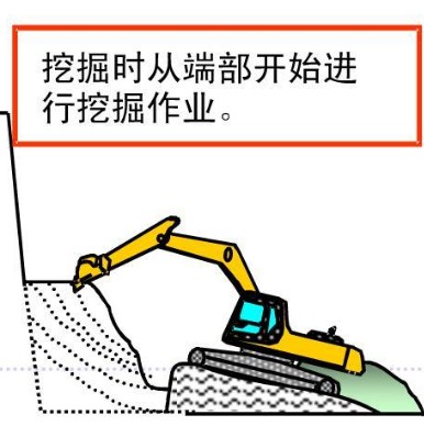 (1)挖掘机根部下方做挖掘作业的时候,尽量将车体靠近石堆边。