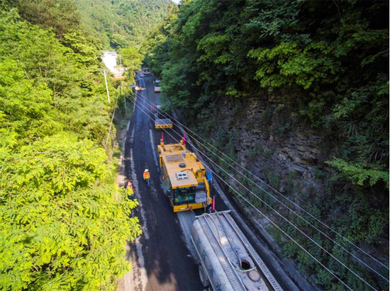 陕西省安康市地处陕、鄂、渝三省交界处,省道s308安平段因长期超大重车通过,造成路段毁坏严重,路基下沉,路基病害比较严重。因路段地处山区,道路狭窄、坡道陡峭,车辆通行量大,加之考虑车辆通行需求路面半幅封闭,半幅仍开放行车,施工难度非常大。同时路基强度高,对冷再生施工工艺提出了更高的要求。