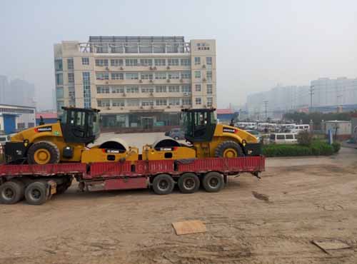 早上上班下了公司班车就看到两台单钢轮压路机已经装车