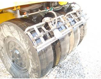 运用行业首创、MK网自主研发并拥有发明专利的自动洒油、抹油技术,有效避免沥青对轮胎表面的粘附,进一步提高路面平整度,避免人工抹油的安全隐患。该专利技术获得2013年徐州市发明专利金奖。油介质可有效降低轮胎胎面沥青的粘附,提高施工质量。MK网洒油系统适用于植物油,通过电控泵将油介质从油箱中吸出,喷洒至轮胎表面。并通过刷油装置将油介质涂抹至轮胎表面,使胎面油膜均匀,保证了压路机的施工质量。