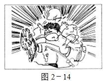 5.绝对不让任何工具或身体的任何部位接触到风扇叶或风扇皮带。否则,可能导致严重创伤。(图2-14)
