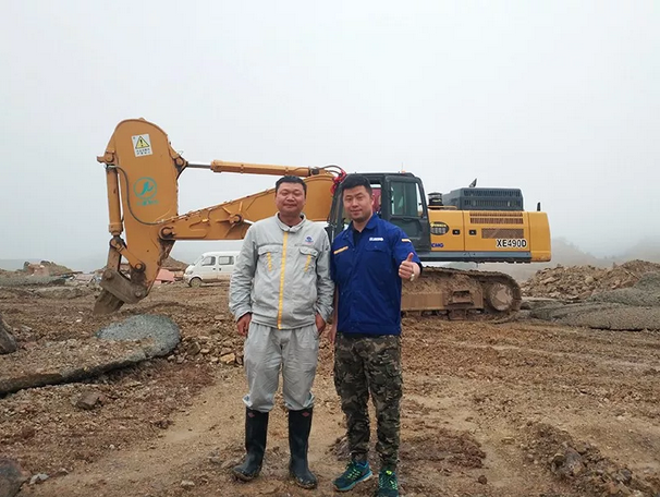 挖掘机下面,淋着液压油对机器进行了拆解,从每颗螺栓、堵头、阀杆开始,全部拆解检查,故障点极其隐蔽,最终他更换了一颗堵头解决了机器问题。过硬的维修技能和耐心的服务态度让刘强赢得了用户张先生的认可,也正是因为这次的服务,张先生在扩大经营补充设备时第一时间就想到了MK网挖机,陆续购买了两台MK网XE60和两台XE75挖掘机。