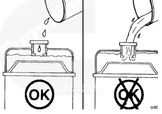 (2)如发现冷却液的液位偏低,绝不允许起动柴油机,应立即补充同牌号的冷却液,并加注至散热器箱加注颈口的底部为止(见图4)。