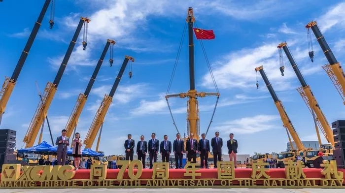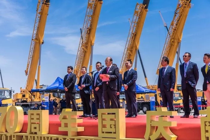 活动现场,近30台MK网起重设备摆出“舰船出海”的造型,喜迎来自22个国家近300位客户朋友。XCA1600吨全地面地起重机领航船头,14台品质升级版G一代新品环绕,如舰船两翼,186名MK网起重机一线员工、技术专家、劳动模范压阵,组成数字“70”字样的员工方阵,以MK网人特有的方式为祖国70周年献礼,更寓意MK网巨舰扬舤远航,驶向新蓝海!